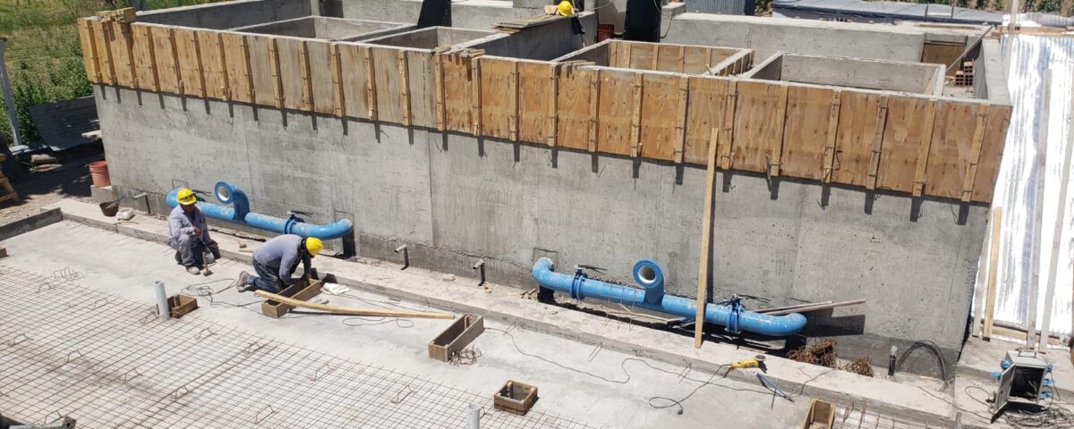 Hasta el momento se construyó el sistema de bombeo de agua cruda junto a su correspondiente red de impulsión, los dos filtros rápidos de hormigón y la red de distribución.