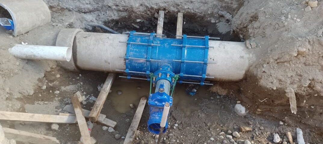 En esta oportunidad se llevo adelante el vaciado total del acueducto para poder empalmar una cañería en T a otra existente y atravesar la avenida Pioneros para colocar una válvula de apertura y cierra.