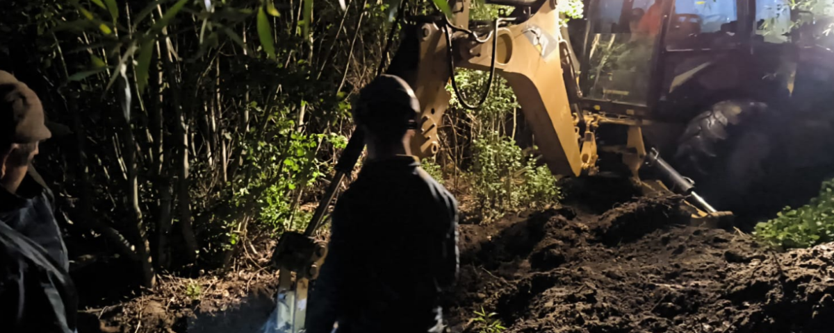 Tras detectar el inconveniente en un sector de difícil acceso, Aguas Rionegrinas coordino un operativo especial nocturno que con la utilización de maquinas logro acceder a la rotura.