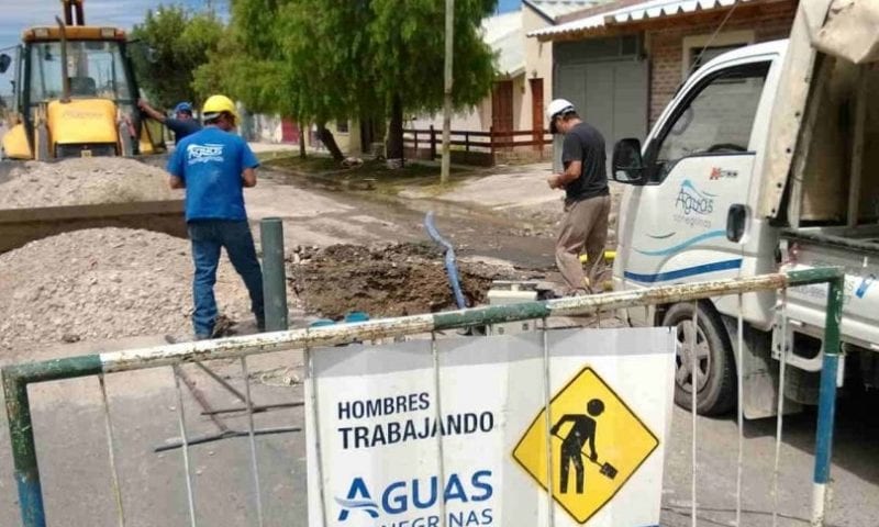 La empresa estatal Aguas Rionegrinas trabaja en el sector de calles Blanes y Surinam para solucionar la rotura provocada por la empresa privada Quidel que realiza trabajos de asfalto a cargo de la Municipalidad de Roca.
